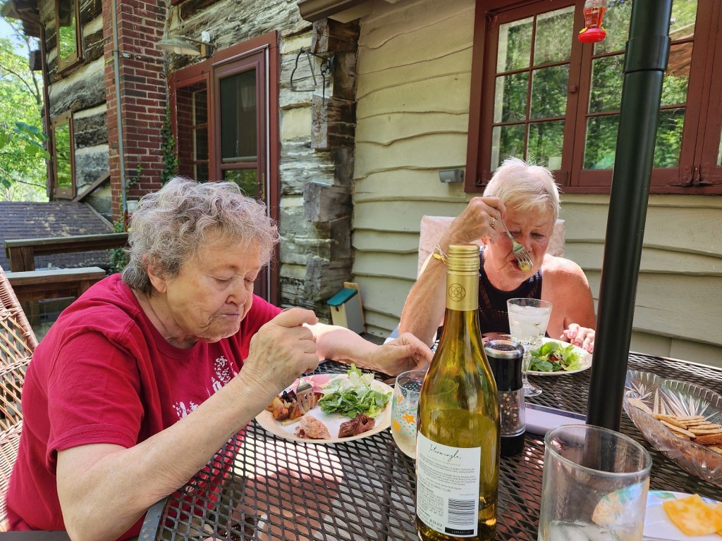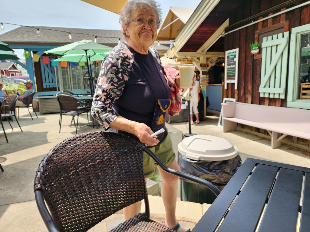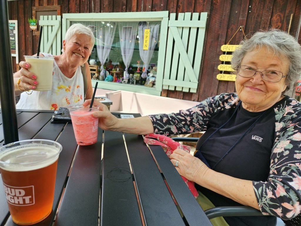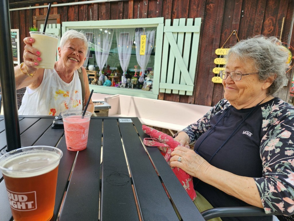 [Rita joined me with her strawberry margarita and Ruthie’s pina colada . . . ]