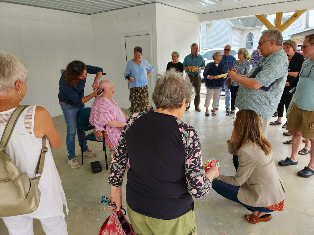 [Then a visit to Rita’s United Methodist Church where her Pastor Mary was getting a public buzz cut in advance of upcoming chemo therapy treatments . . . ]