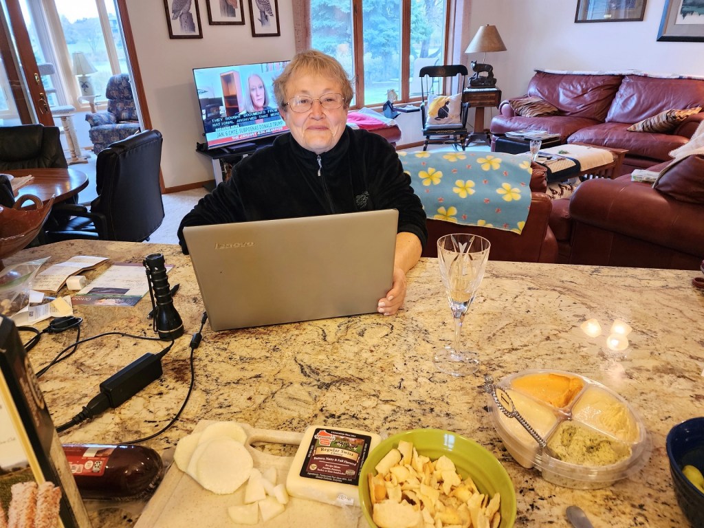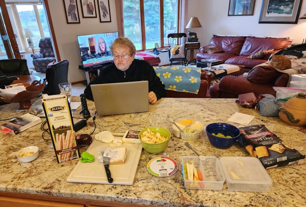 [We decided to spend Rita’s last night eating at home before all the in-house food rotted from lack of attendance at home during meal times . . . ]