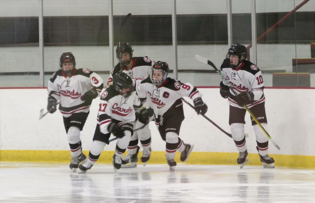 [The Cardinals were hosting Benilde-St. Margaret’s (BSM), a great opening game between two teams ranked in the top 10 in the class AAA state rankings. Here’s some action from the JV game . . . ]