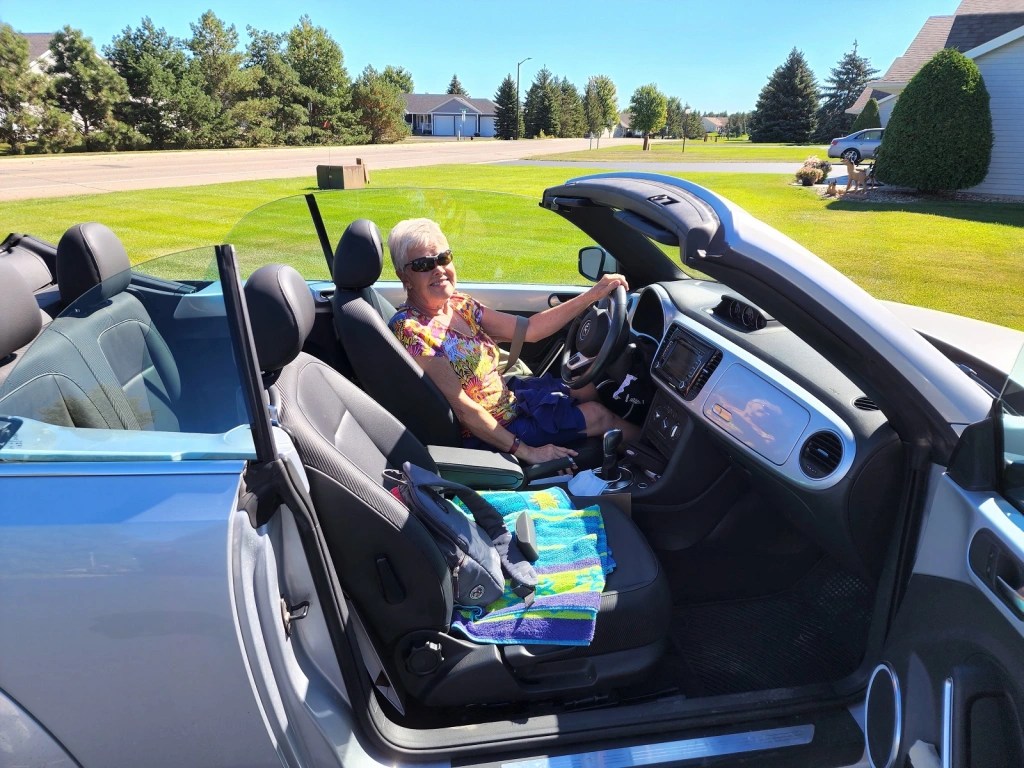 [This is Rita at MSP airport. Happily engaged in the process of returning home to Indiana after a week with relatives in Vacationland USA. The happiness was short-lived, however, when she got to the outside check-in (that’s two hyphenated words in one sentence) which requested she pay for checking bag #2. Rita promptly advised she had checked bag #2 on-line (another hyphen) the day before and had paid for it by credit card. Naturally, the checker-inners could find no such record and told her she would have to pay (again). Well, harumpf, harumpf, harumpf, Rita and I entered the airport in hopes of finding resolution to the bag #2 situation. By then I had to leave since Ruthie had already been parked on the curb for 15 minutes. Ruthie & I were staying in the Cities for a visit to the Como Park Conservatory before heading back to Alex. We called Rita from Como Park – now they weren’t going to let her on the plane because it was overbooked. Ruthie shouted into the phone, which Rita had on speaker, that they better get her on the plane because they’d “eff’ed her over enough already” (which the airport staff heard). Now we couldn’t leave the Cities lest we’d have to pick up Rita again. Rita later called to say they were going to get her on the plane – maybe in 1st class – and she did get an aisle seat in coach (which also usually costs extra), if not 1st class. She made it home, some the worse for wear . . . ]