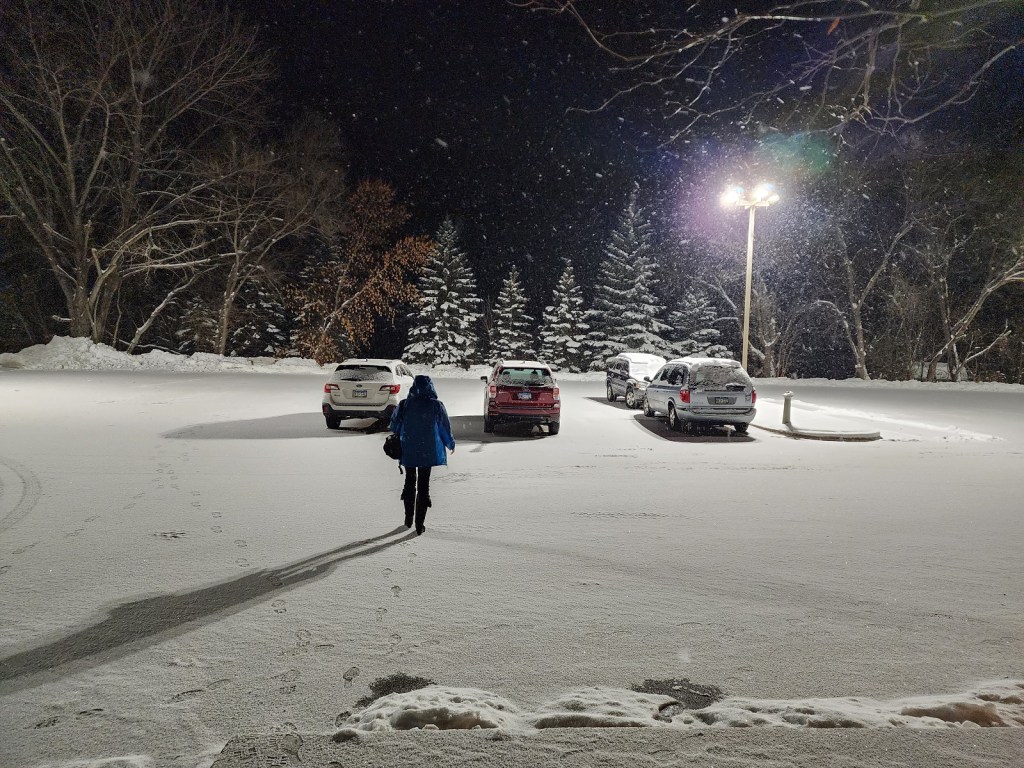 [Thank goodness Nimoy (“live long and prosper”) was here for caregiving when we got home! The PA’s said I could go to the girls b’ball game that night, but the supervisor said I couldn’t. Will be walking Monday though . . . ]