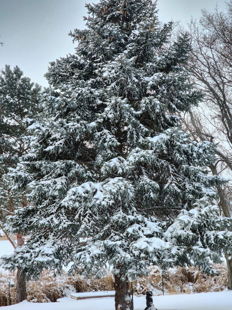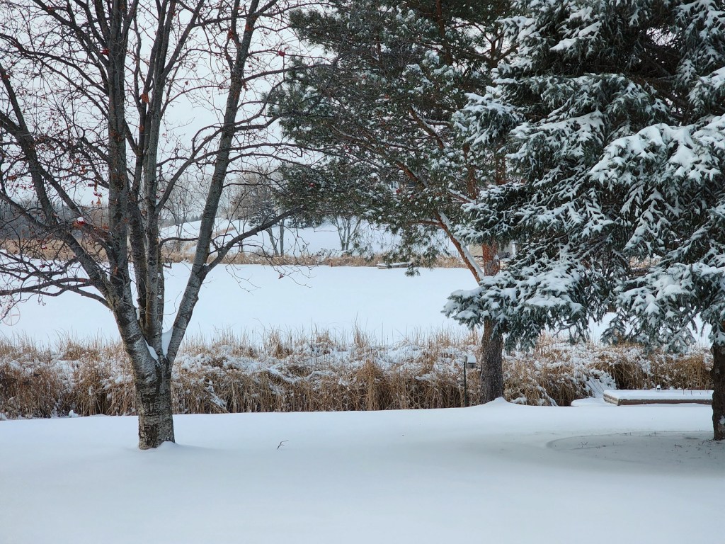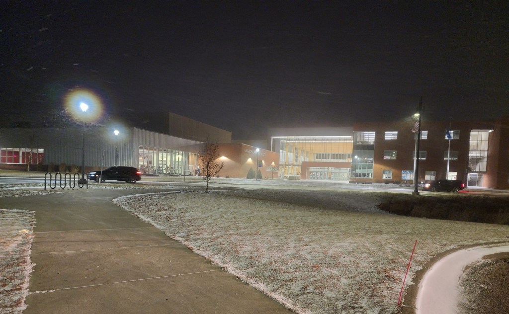 [Interesting cloud cover from come and go snow flurries . . . ]