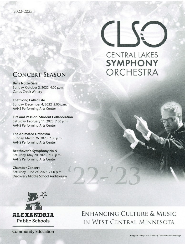 [Central Lakes Symphony Orchestra with “That Song Called Life”. I need the full symphony photo to begin with for Facebook display purposes . . . ]