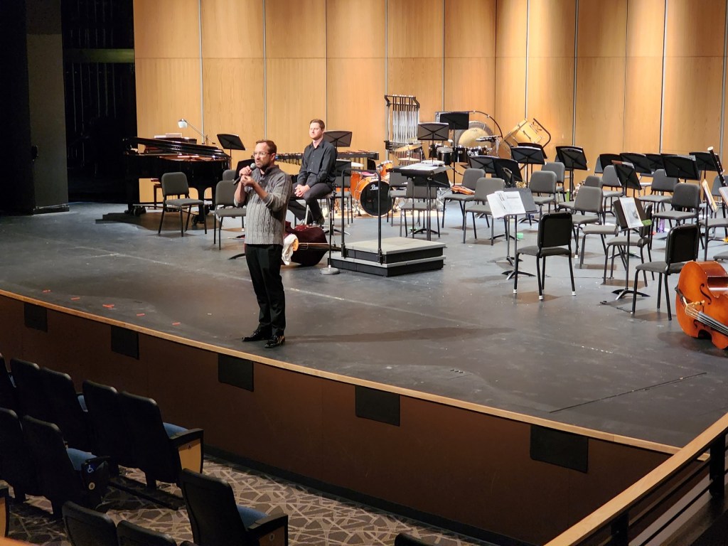 [With the concert soloist, Clint Sevcik, also on stage . . . ]