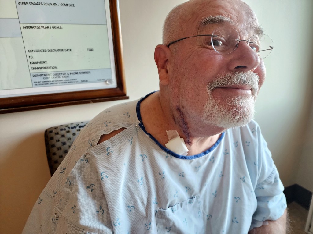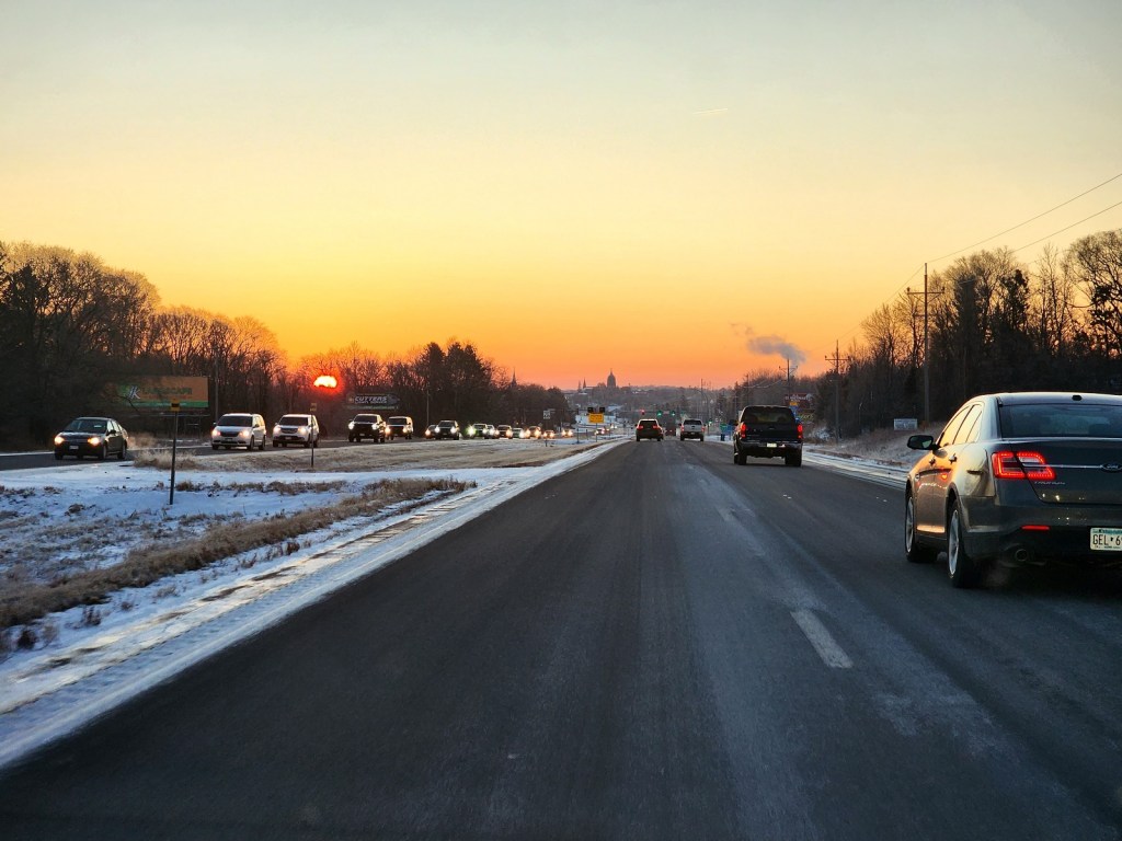 [On the way to St. Cloud Hospital (an hour and a half trip) at O-dark-thirty to have the debris in my right carotid artery removed . . . ]